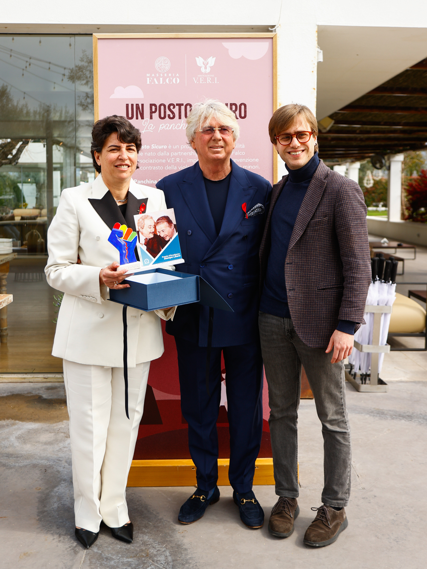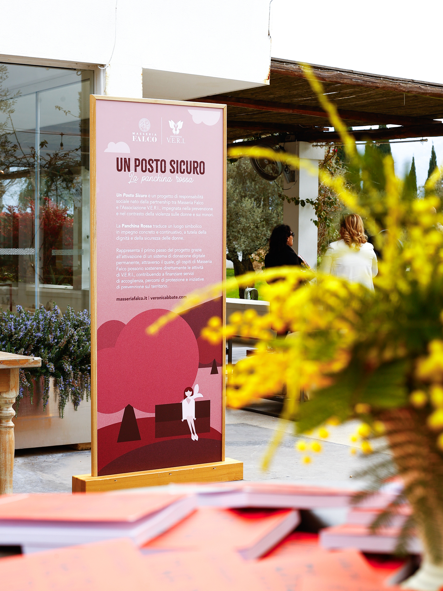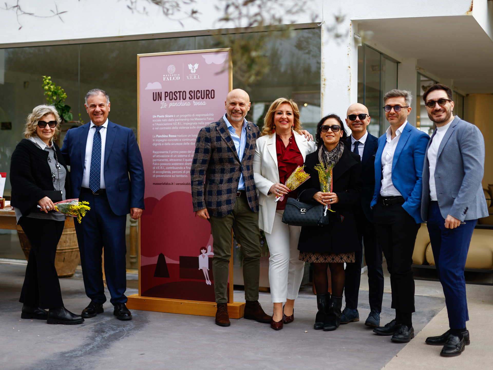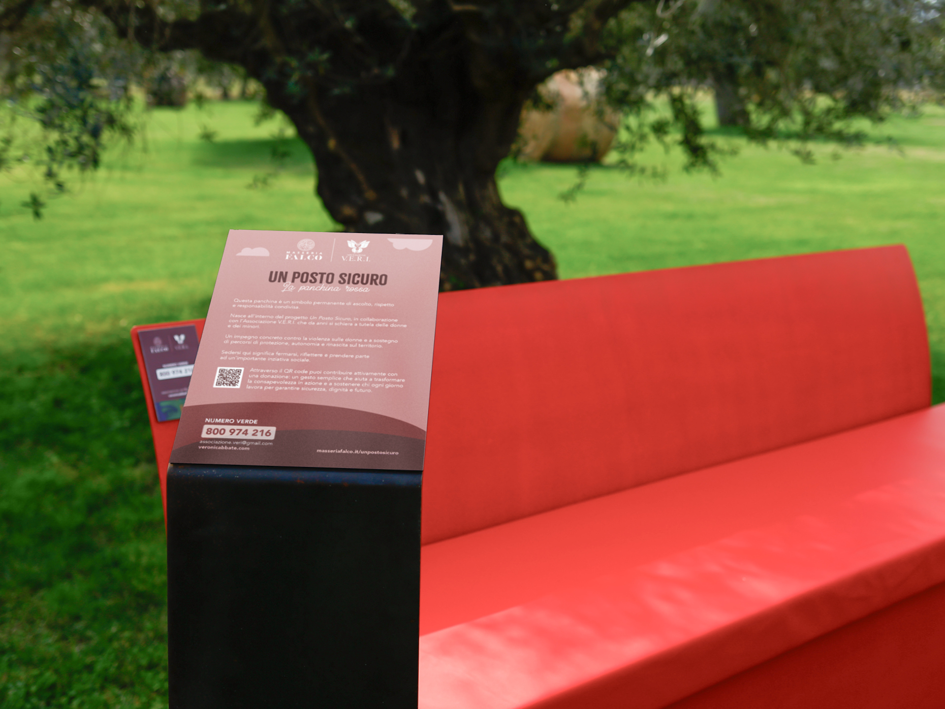 Inaugurazione della Panchina Rossa, in collaborazione con l’Associazione V.E.R.I, non solo un simbolo, ma un presidio di memoria e speranza, punto di accesso permanente a un sistema di raccolta fondi digitale donato da Masseria Falco all’Associazione V.E.R.I.